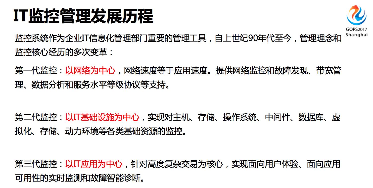 IT監控管理(lǐ)的(de)發展大(dà)概有(yǒu)三代,從(cóng)上(shàng)世紀九十年(nián)代至今,第σ一(yī)代是(shì)以網絡為(wèi)中心,在這(zhè)個(gè)時(shí)期咱們提供比較多(duō)的(de)都(dōu)是(shì)基于網絡的(de)監控和(hé)故障發現(xiàn),帶寬管理(lǐ)和(hé)服務水(shuǐ)平協議(yì)。